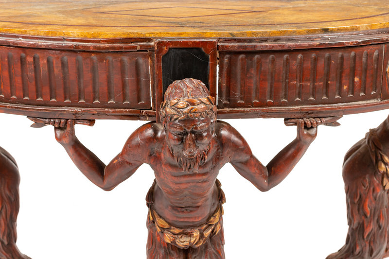 An Italian Painted Console Table with Satyr Supports