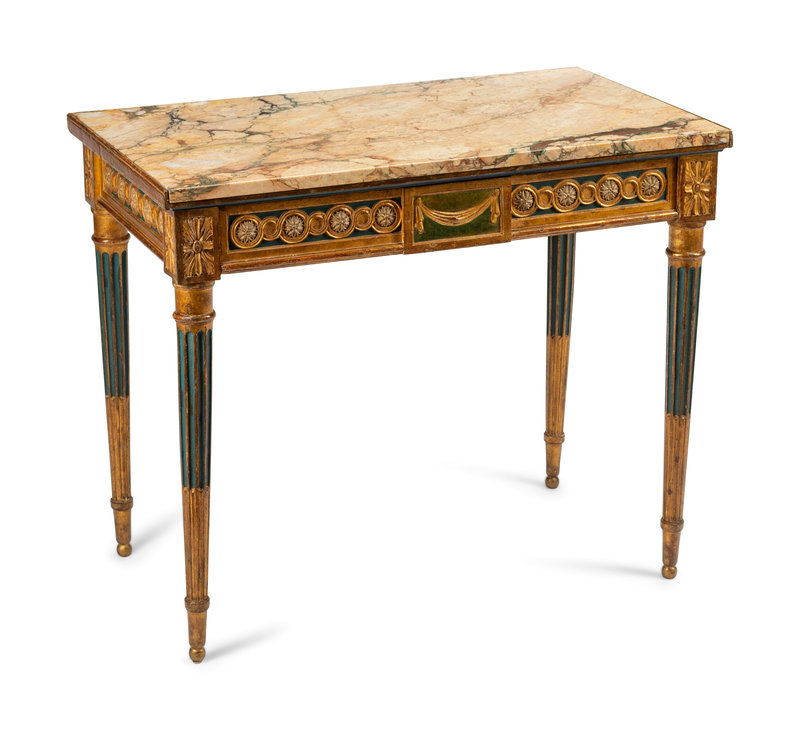 An Italian Neoclassical Painted and Parcel Gilt Console Table