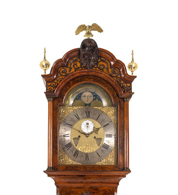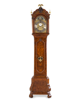 A Dutch Gilt Bronze Mounted Burl Walnut Tall Case Clock