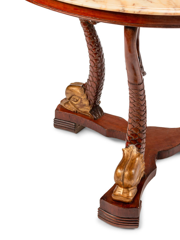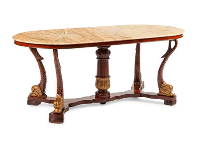 A Northern European Neoclassical Parcel Gilt Mahogany Center Table