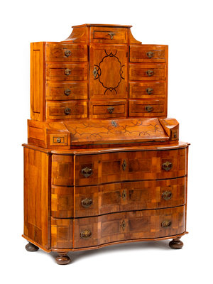 A Continental Burl Walnut Tabernacle Bureau