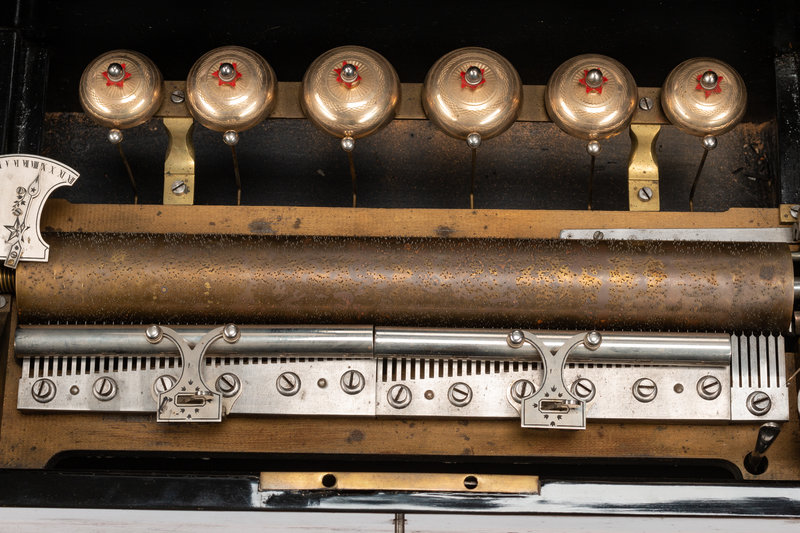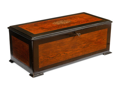 A Swiss Burlwood "Bells-in-Sight" Cylinder Music Box