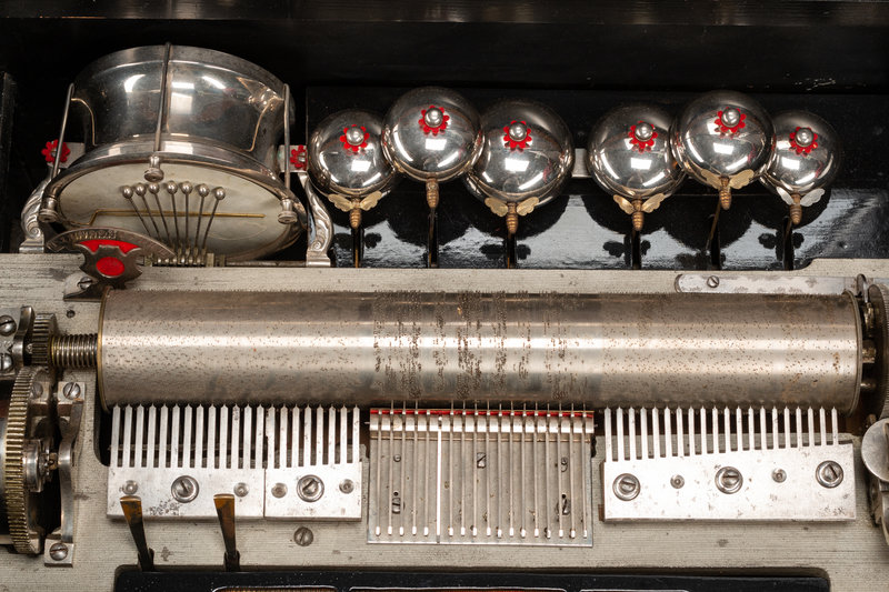 A Large Swiss Cylinder "Bells-in-Sight" Music Box
