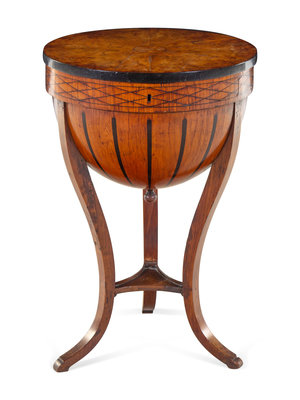 A Biedermeier Parcel Ebonized Burlwood Work Table