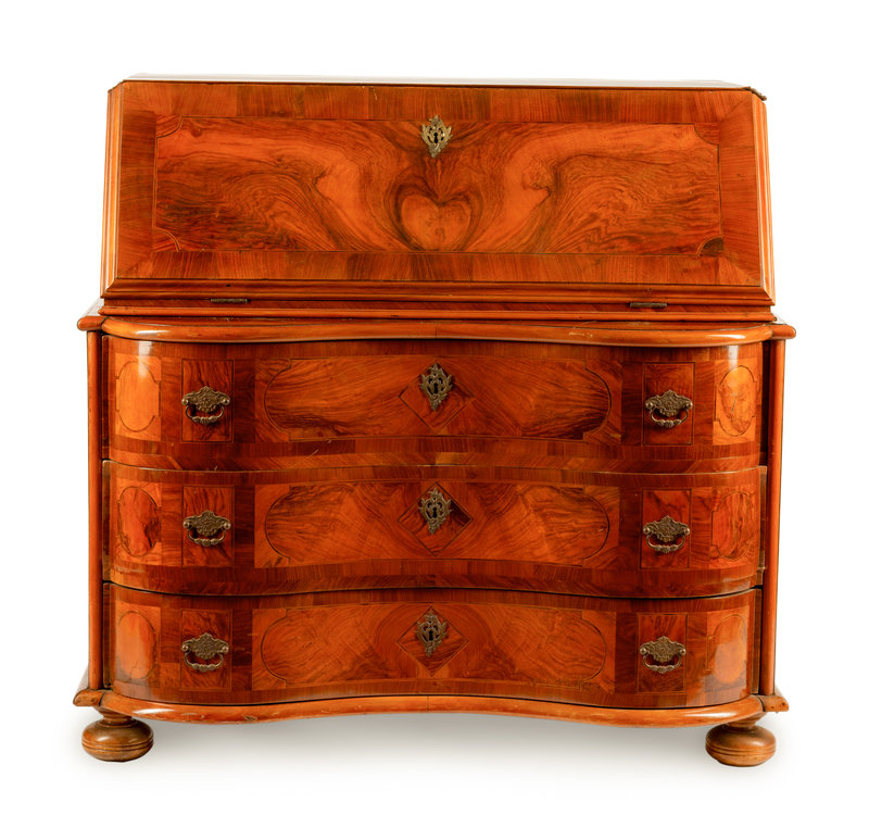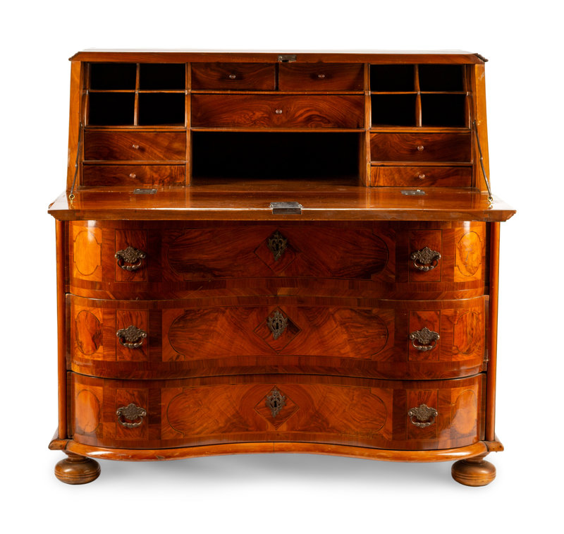 A Continental Burl Walnut Slant-Front Bureau