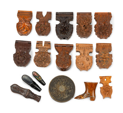 A Collection of Sixteen Continental Carved Wood Boxes
