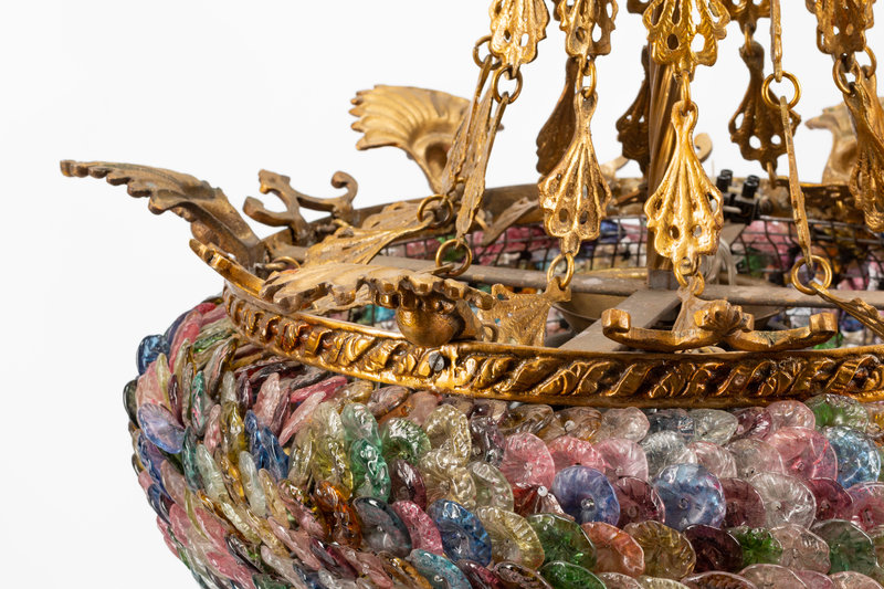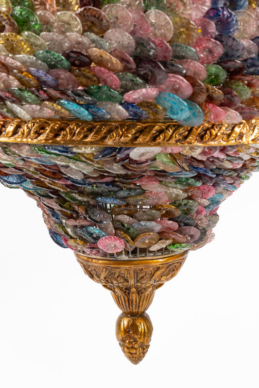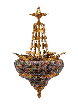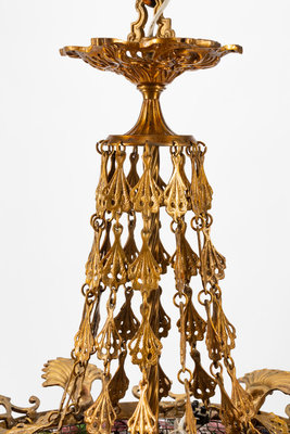 A Continental Gilt Bronze and Colored Glass Lantern