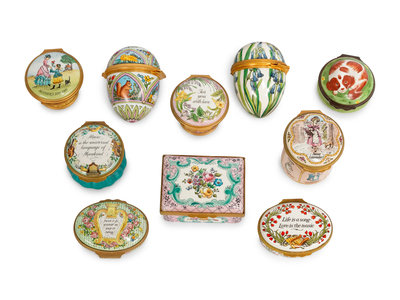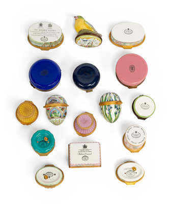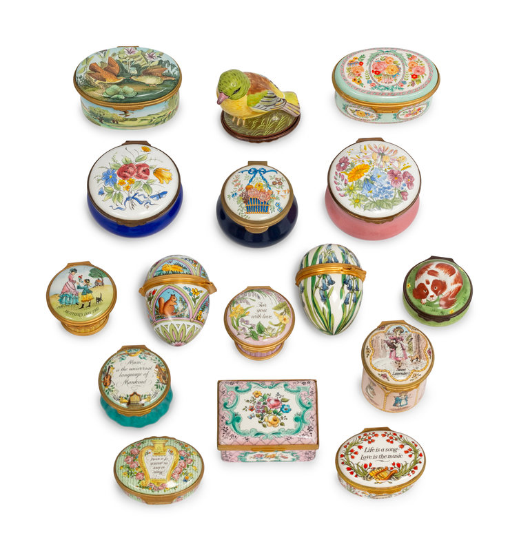 A Collection of Sixteen Small Enameled Copper Boxes