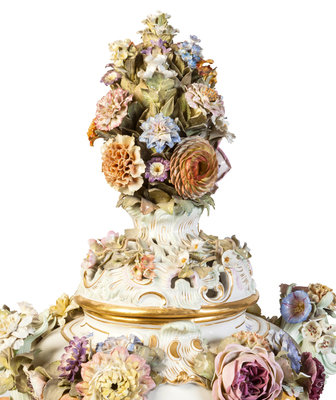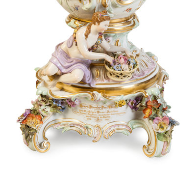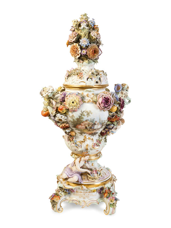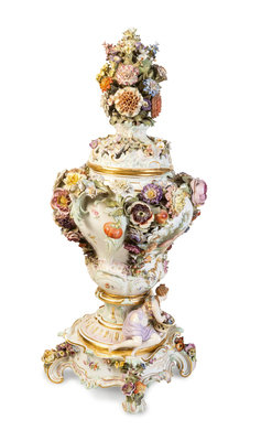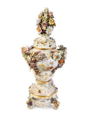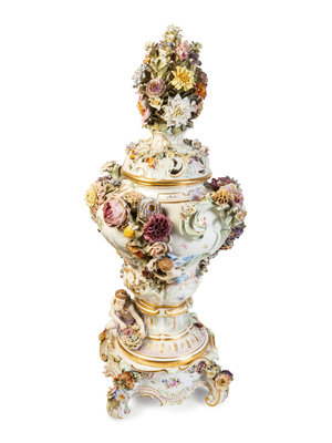 A Meissen Porcelain Potpourri Urn, Cover and Stand