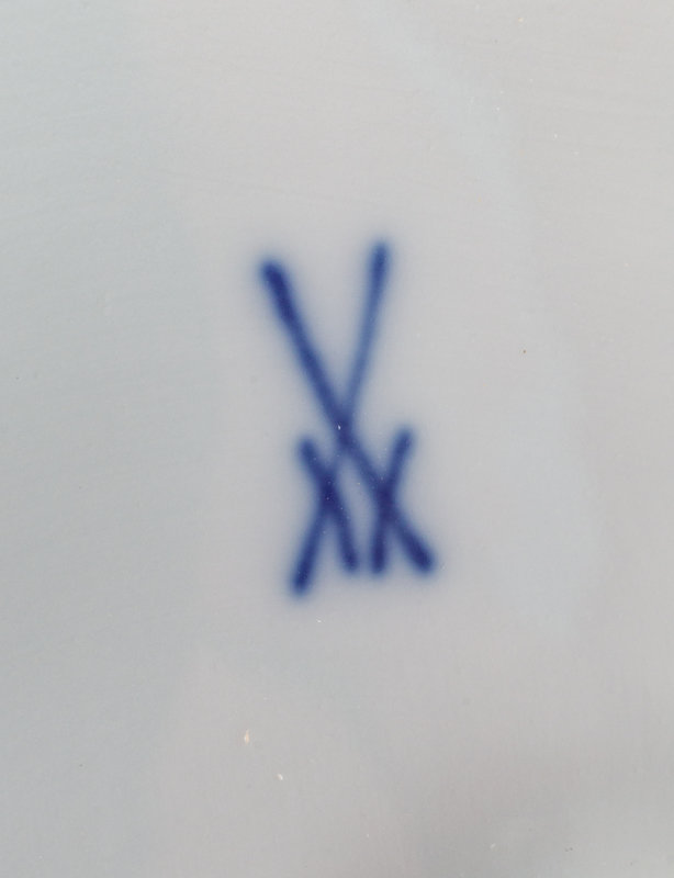 bearing crossed swords in underglaze blue to the underside.