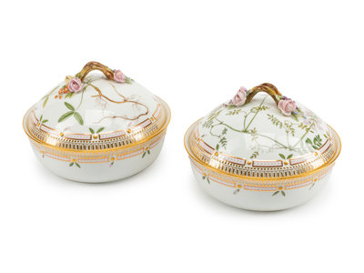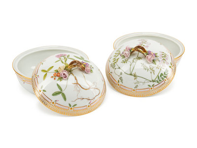 A Pair of Royal Copenhagen Flora Danica Porcelain Covered Entrée Dishes
