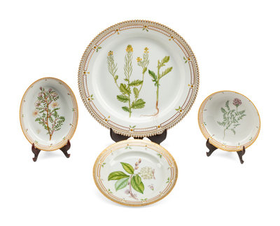 Four Royal Copenhagen Flora Danica Porcelain Serving Articles