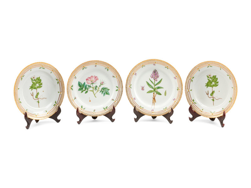 A Set of Four Royal Copenhagen Flora Danica Porcelain Plates
