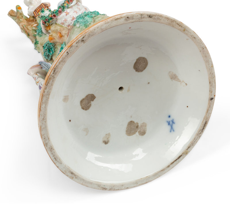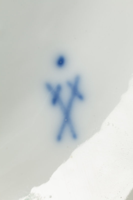 bearing spurious dotted crossed swords in underglaze blue to the underside.