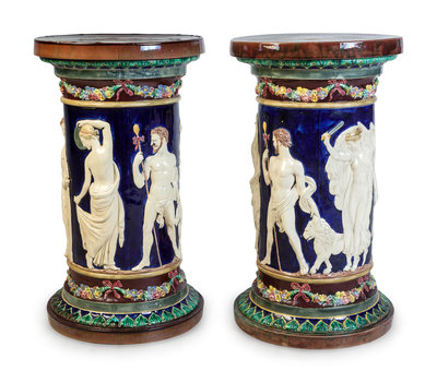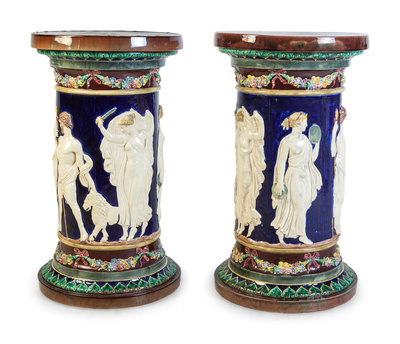 A Pair of Majolica Pedestals