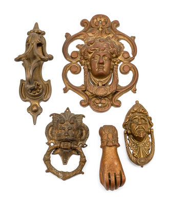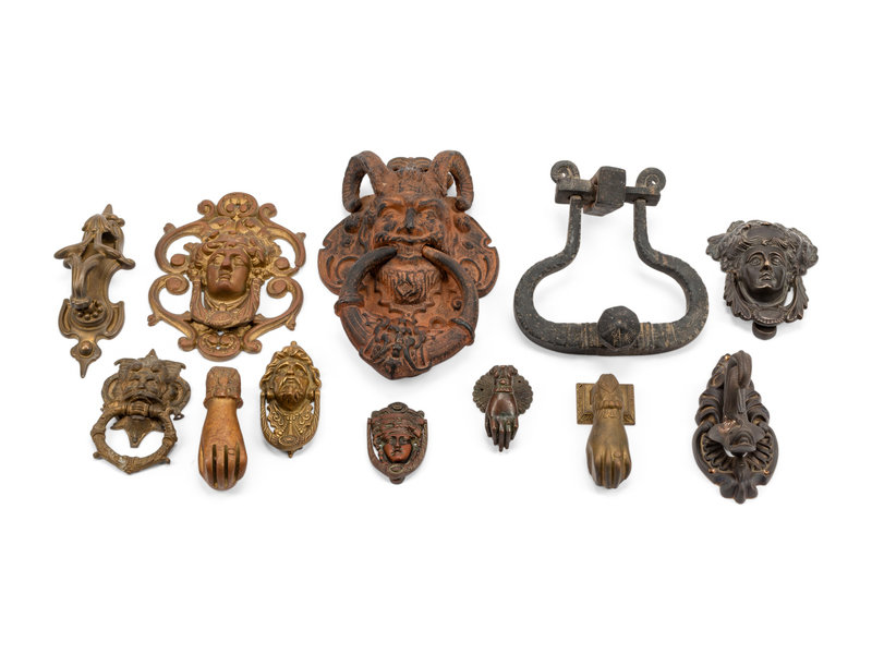 A Collection of Twelve Continental Bronze Door Knockers