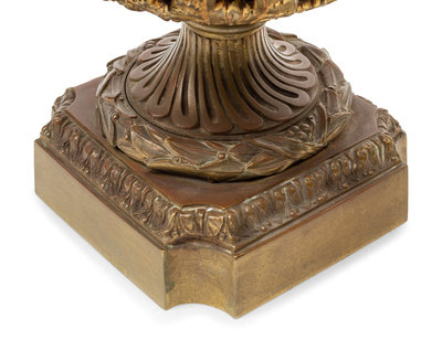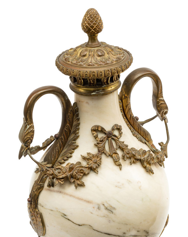 A Pair of Continental Gilt Bronze Mounted Marble Urns