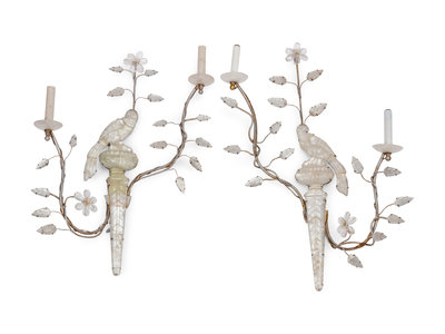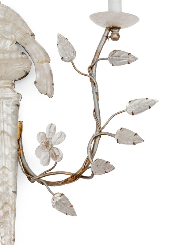 A Pair of Rock Crystal Mounted Two-Light Sconces in the Style of Maison Baguès