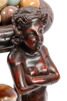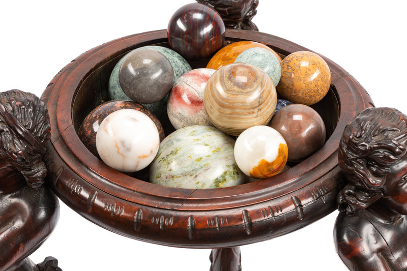 A Continental Carved Wood Jardinière and Fifteen Marble Ornaments