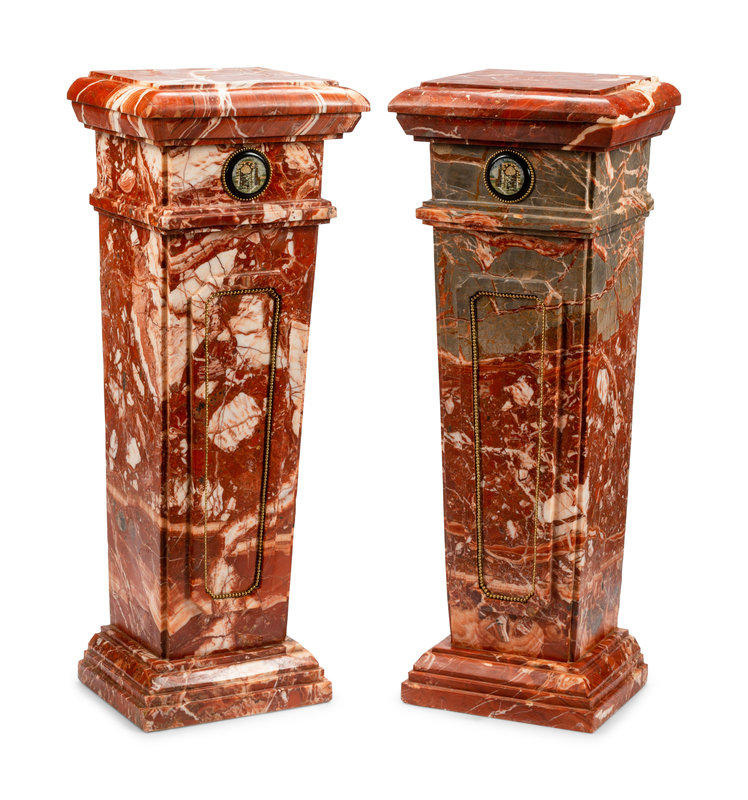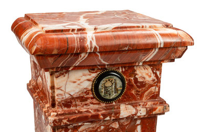 A Pair of Micromosaic Mounted Marble Pedestals