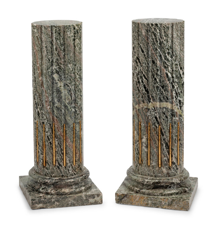 A Pair of Continental Gilt Bronze Mounted Marble Pedestals