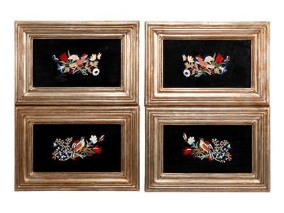 A Set of Four Pietra Dura Plaques in Giltwood Frames