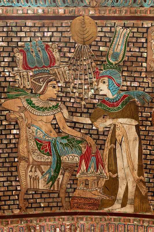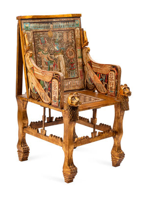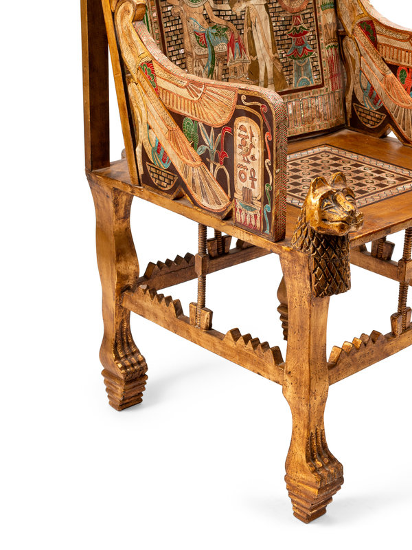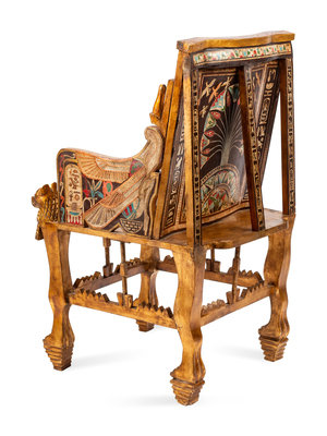 An Egyptian Style Parcel Gilt and Inlaid Throne Chair