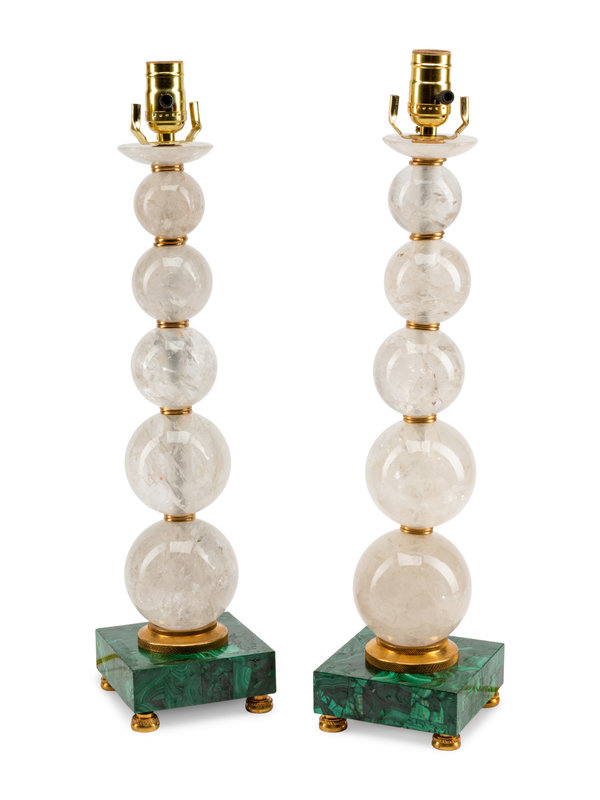 A Pair of Rock Crystal and Malachite Table Lamps