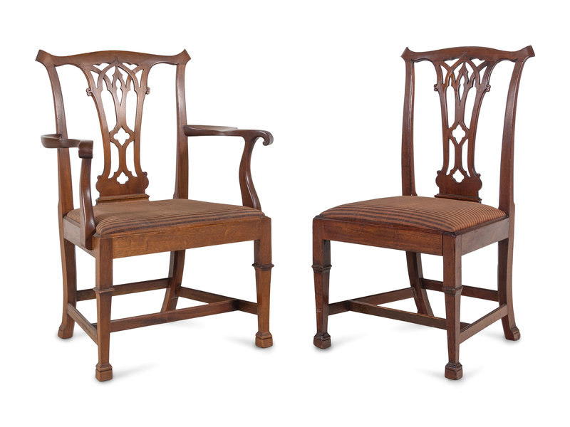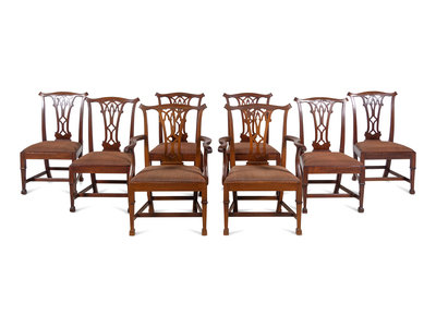 A Set of Eight George III Mahogany Dining Chairs in the Chippendale Taste