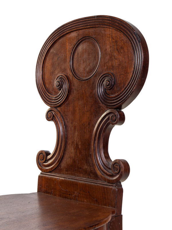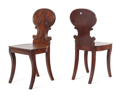 A Pair of Regency Style Mahogany Hall Chairs