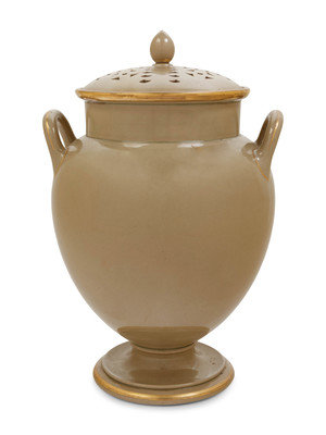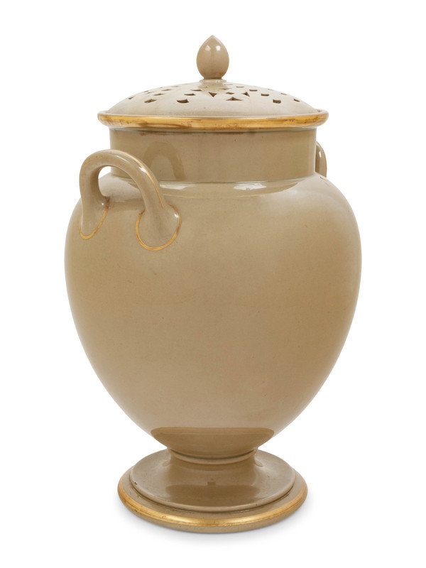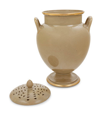 An English Parcel Gilt Porcelain Potpourri Jar and Pierced Cover