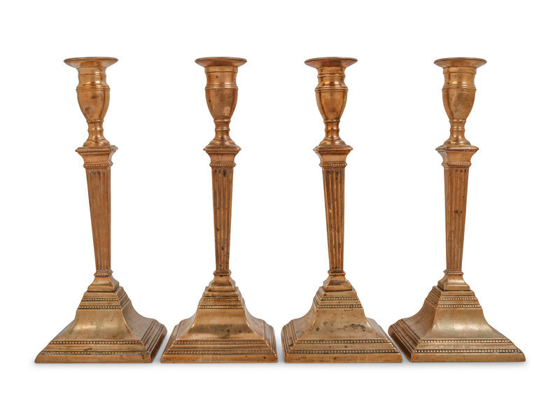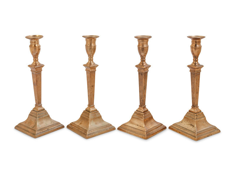 Two Pairs of English Brass or Gilt Copper Candlesticks
