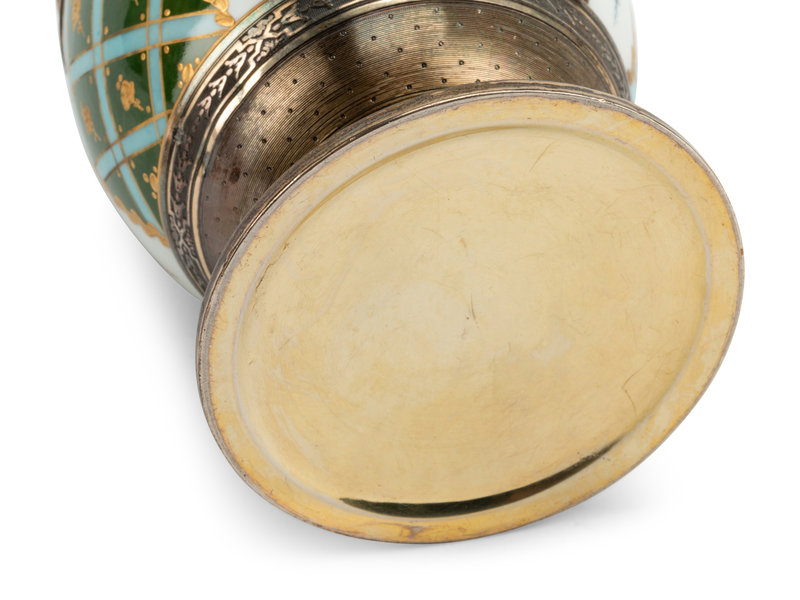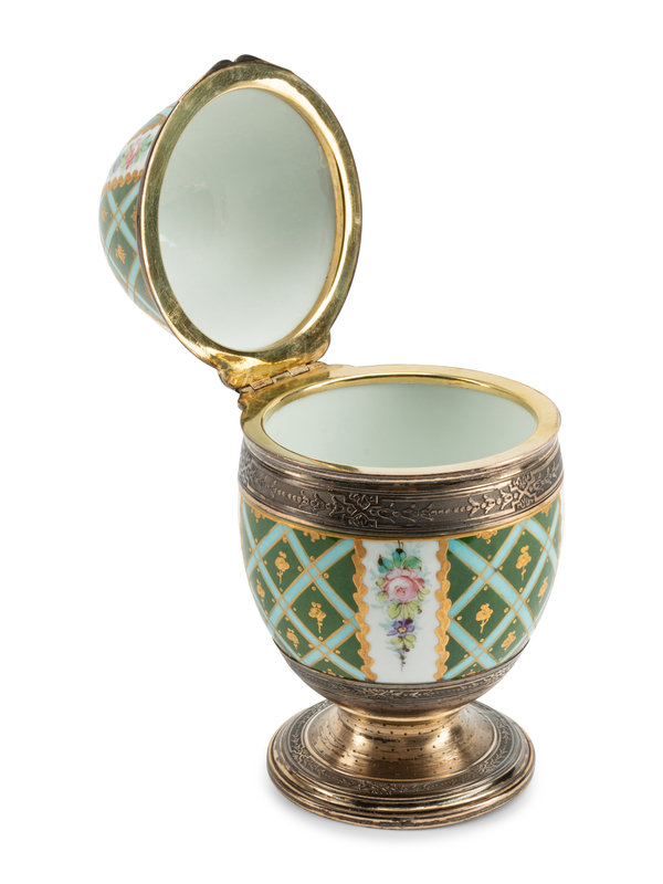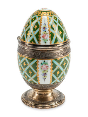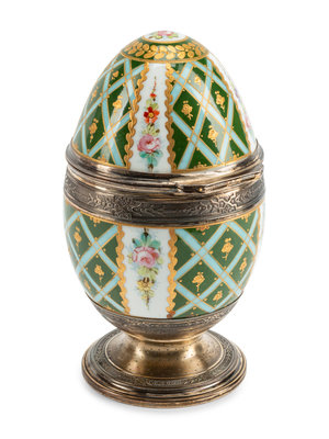 A Continental Silver Mounted Porcelain Egg-Form Box