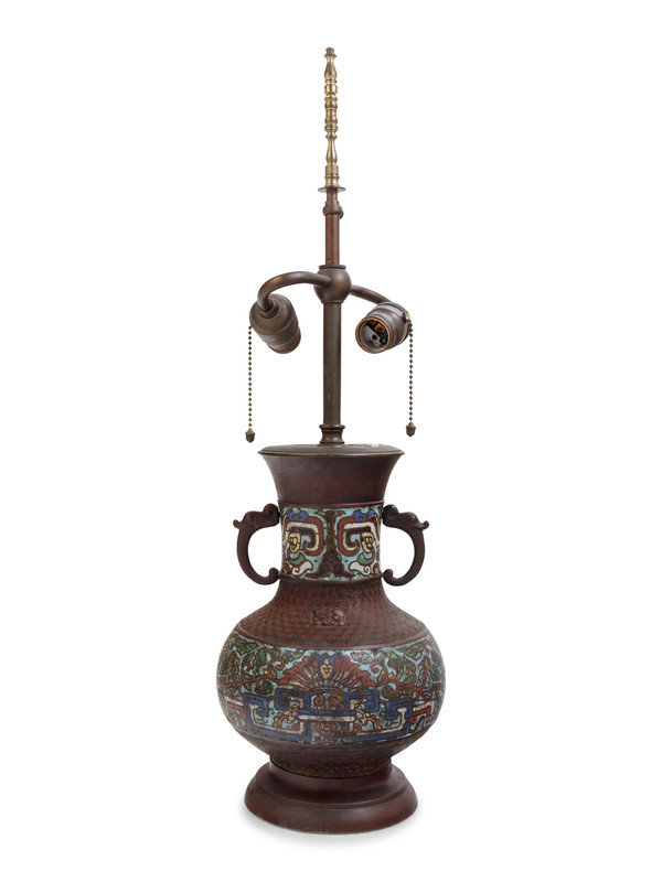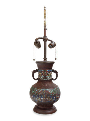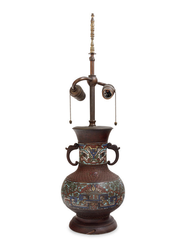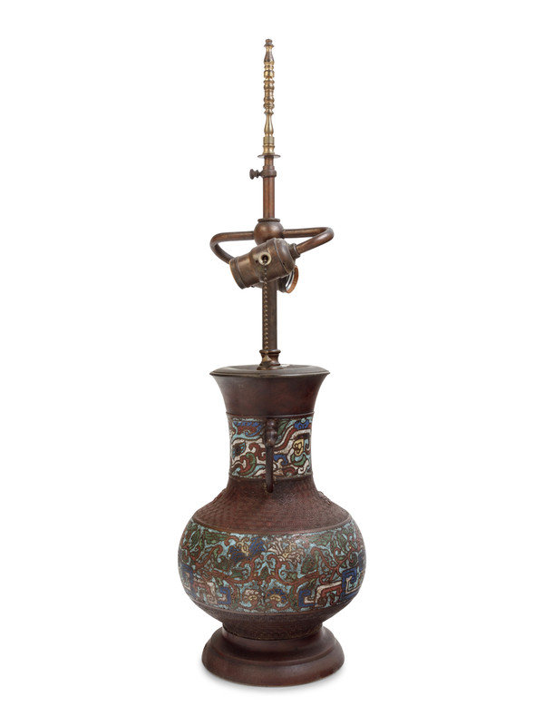An Archaistic Bronze and Cloisonné Vase Mounted as a Lamp