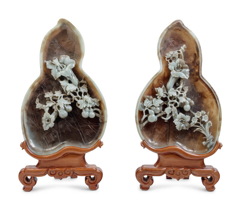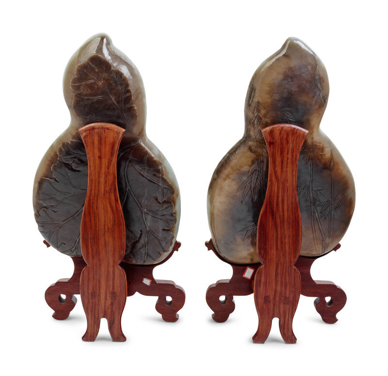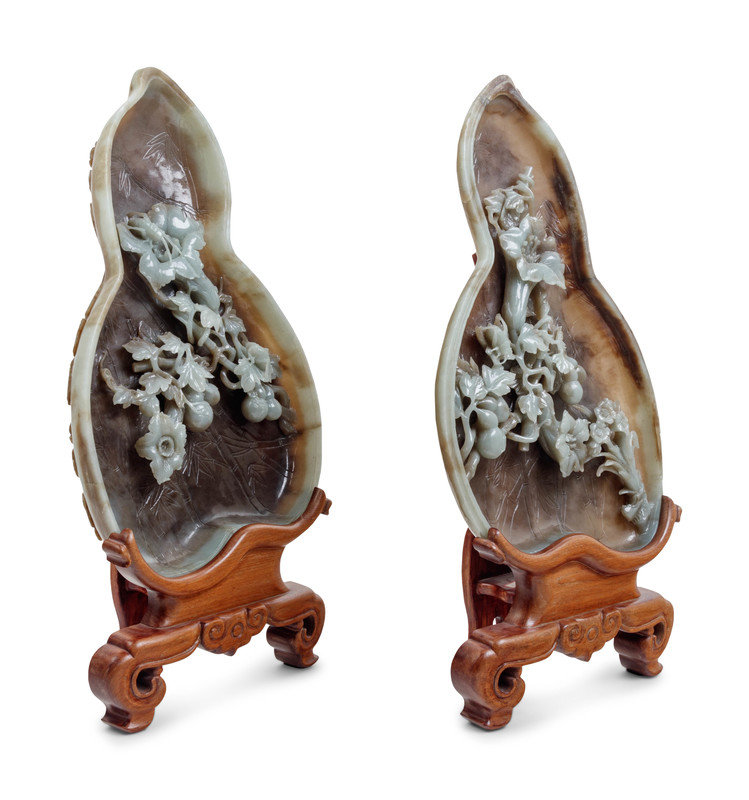 A Pair of Chinese Export Carved Jade Coupes with Stands