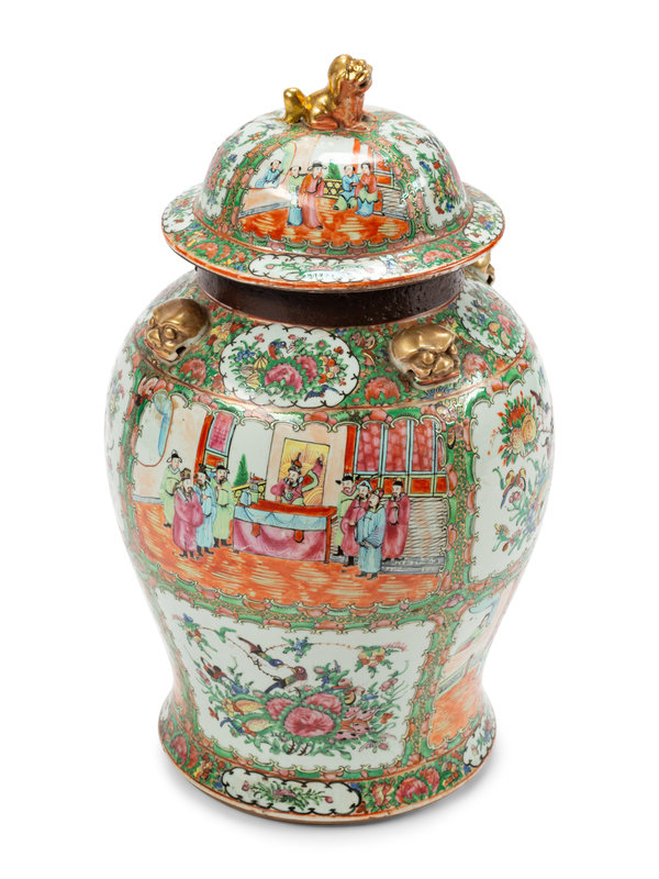 A Large Chinese Export Rose Medallion Porcelain Jar