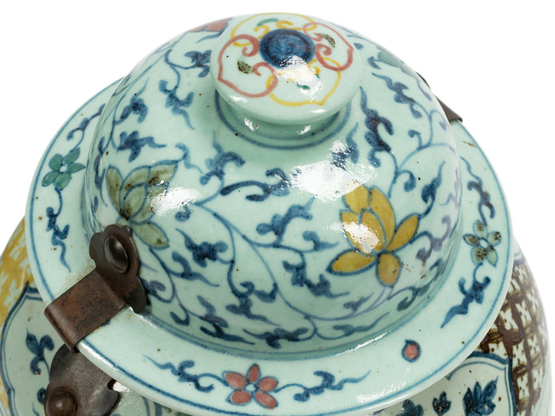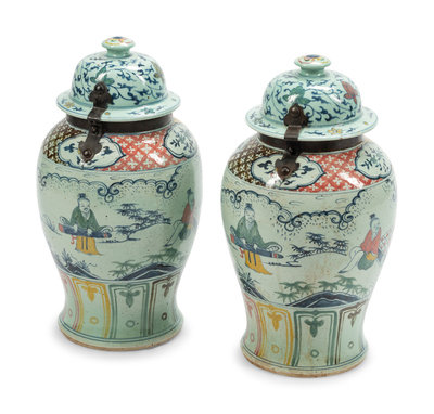 A Pair of Chinese Export Iron Mounted Porcelain Tea Jars