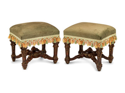 A Pair of Louis XIV Style Carved and Parcel Gilt Tabourets