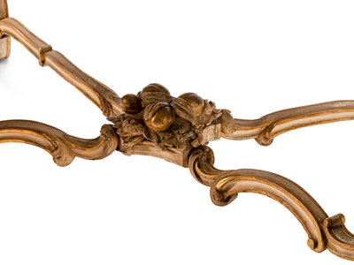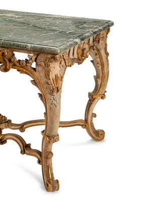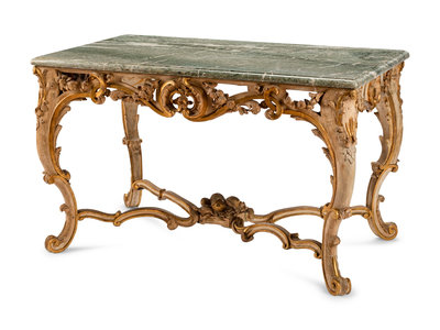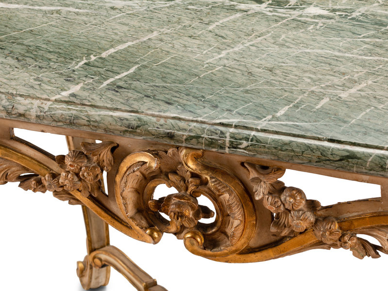 A Louis XV Painted and Parcel Gilt Marble-Top Center Table