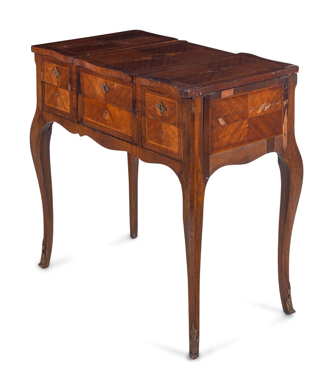 A Louis XV Style Inlaid Walnut Poudreuse