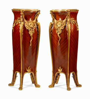 A Pair of Louis XV Style Gilt Bronze Mounted Mahogany Pedestals