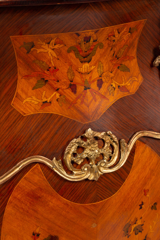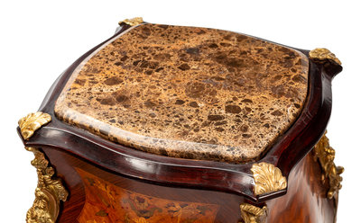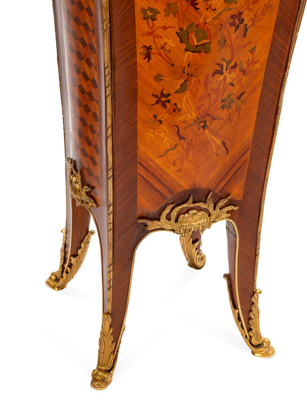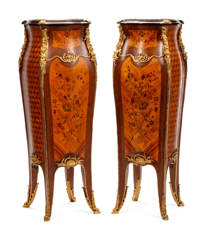 A Pair of Louis XV Style Gilt Metal Mounted Marquetry Pedestals