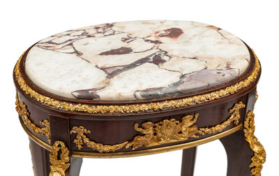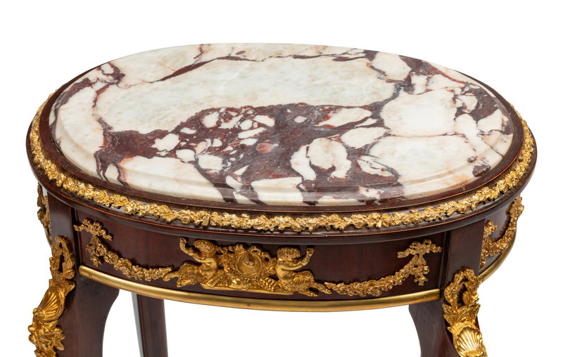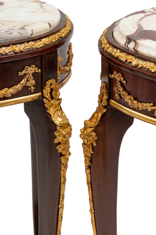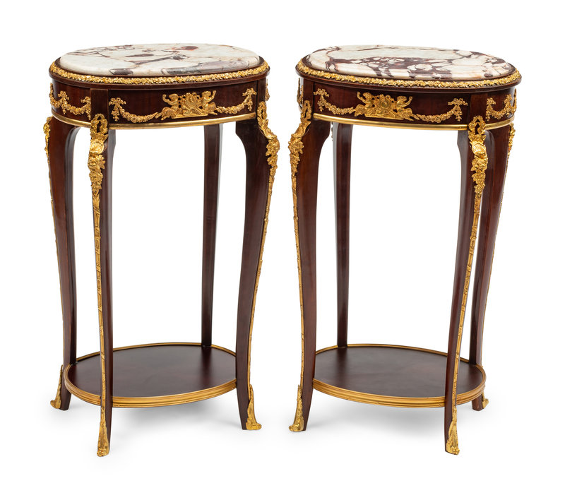 A Pair of Louis XV Style Gilt Bronze Mounted Marble-Top Side Tables
