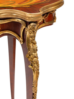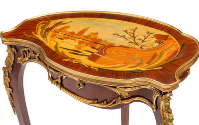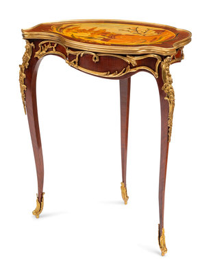 A Louis XV Style Gilt Bronze Mounted Marquetry Table