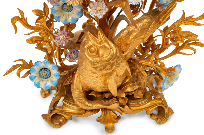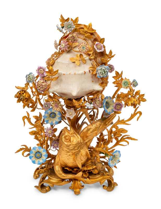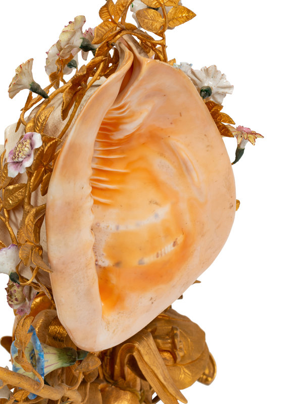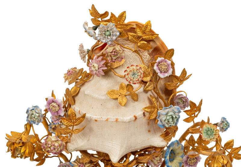 A Louis XV Style Gilt Bronze, Porcelain and Seashell Mounted Sea Motif Lamp