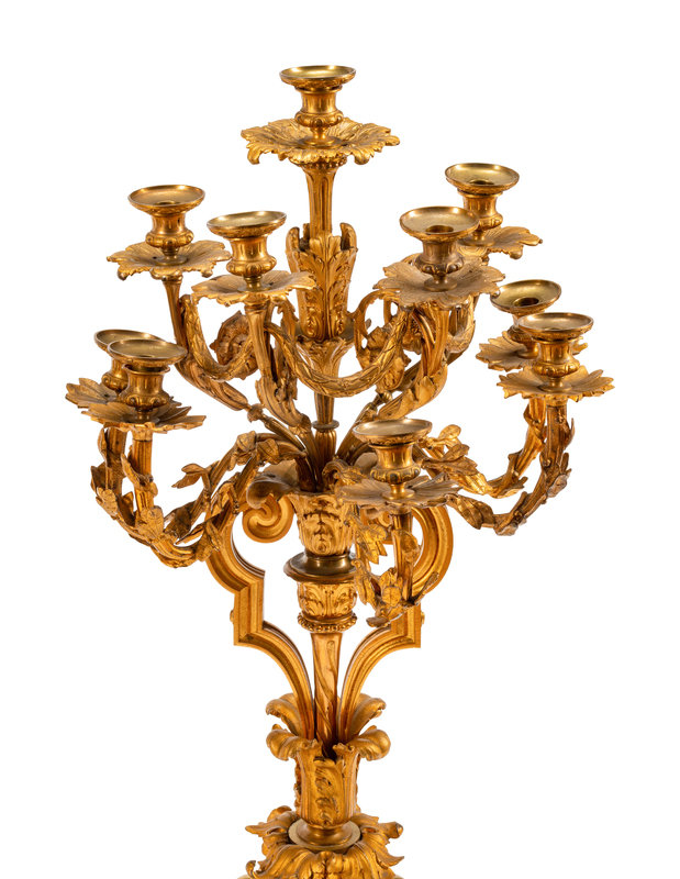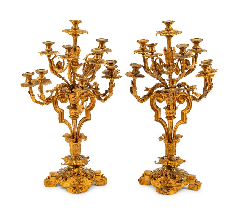 A Pair of Louis XVI Style Gilt Bronze Nine-Light Candelabra