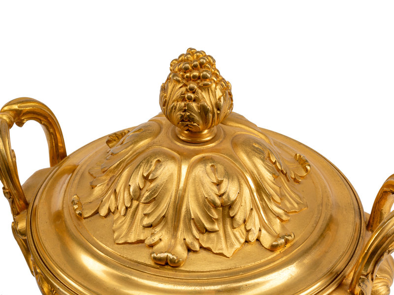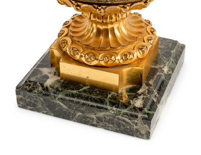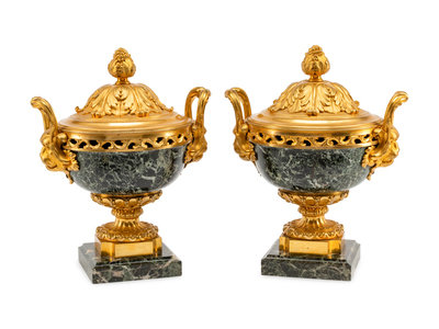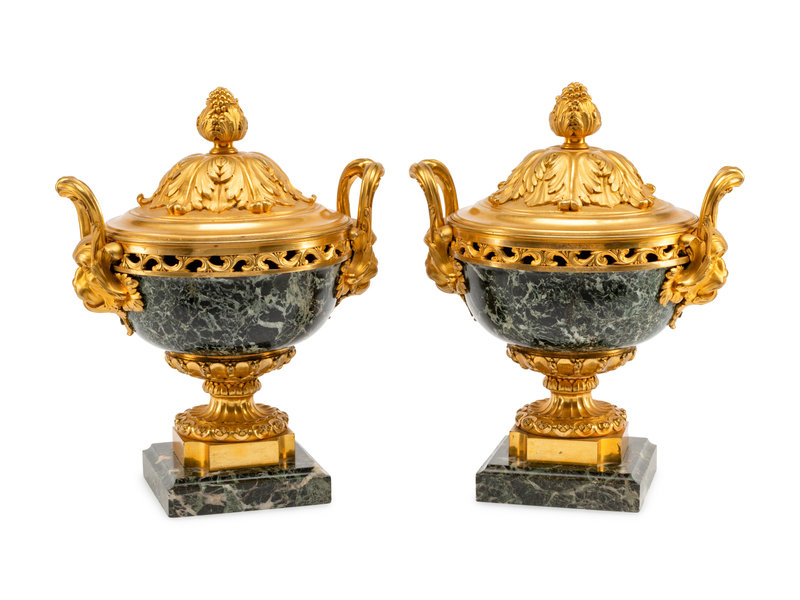 A Pair of Louis XVI Style Gilt Bronze Mounted Marble Potpourri Urns