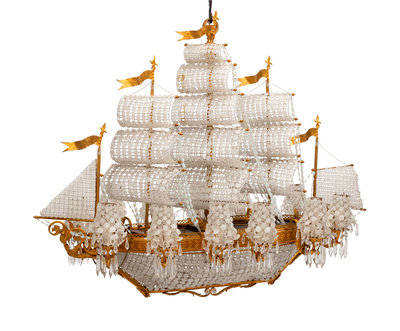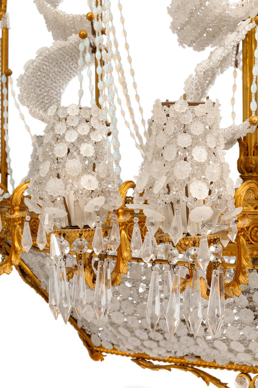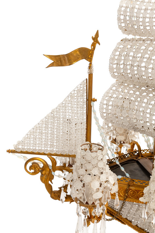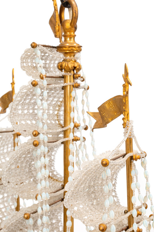 A Louis XVI Style Gilt Bronze and Cut Glass "Ship" Chandelier