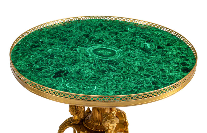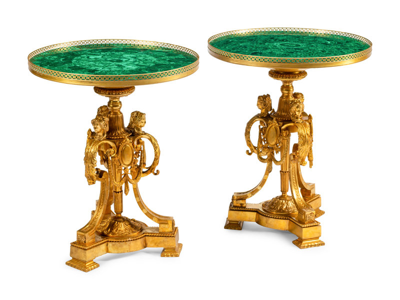 A Pair of Louis XVI Style Gilt Bronze and Malachite Tables