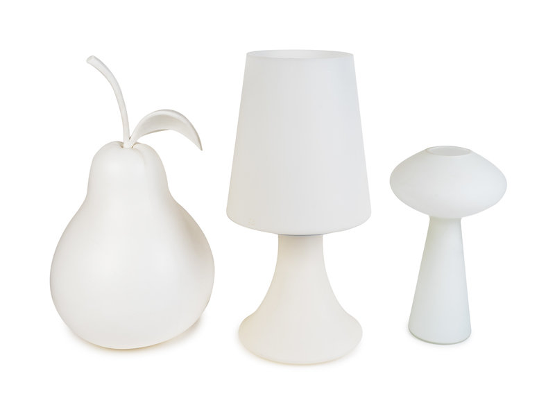together with a pear-form lamp, unknown lamp and a mushroom Peill & Putzler lamp.
